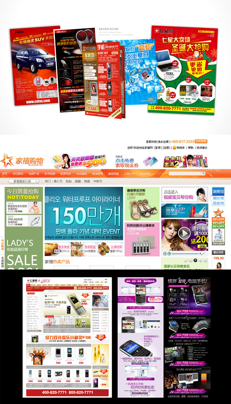 七星集团成立于1998年,是中国最大的媒体购物平台之一。 香港上市公司,销售网点遍布全国,公司产品和服务涉及化妆品、保健品、儿童用品、家庭用品、数码产品、汽车用品等多个领域。践道为其策划全年DM活动物料,形象设计及电视购物片制作.