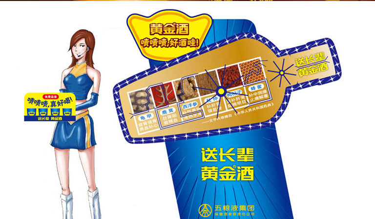 百年来,五粮液集团以代表作——五粮液誉满天下,贵为“中国白酒大王”;2008年,五粮液集团新代表作——黄金酒,荣膺“世界第一瓶功能名酒”,开白酒健康饮用之先河。践道为其设计的包装设计、海报及部分陈列效果。